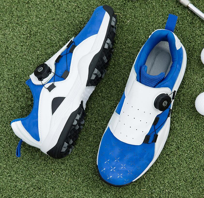 - 上質高級品ゴルフシューズ スパイクレス スポーツシューズ スニーカー デニス 男女兼用 運動靴 ウォーキングシューズ軽量 防水防滑ブルー
