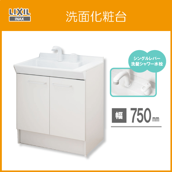 - 洗面化粧台 下台のみ 幅:75cm 高さ:80cm(天板部) シングルレバーシャワー水栓 PV1N-755S(4)Y LIXIL INAX リクシル イナックス