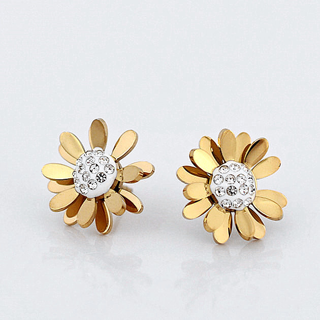 - 肌に優しい金属 ステンレス デイジーフラワー 花 ゴールド色 ピアス
