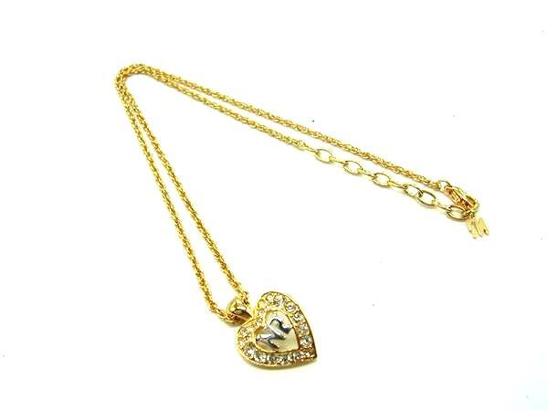 - ■美品■ NINA RICCI ニナリッチ ラインストーン ハート ネックレス ペンダント アクセサリー レディース ゴールド系 DY0806