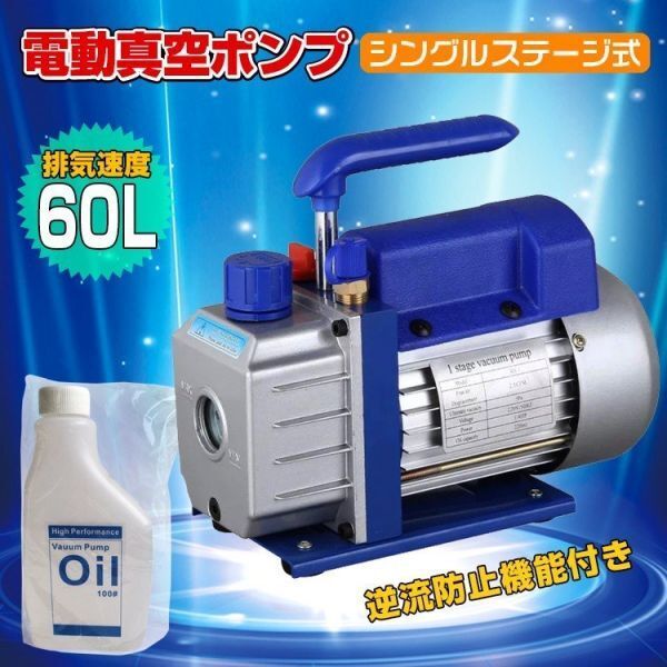 - 電動真空ポンプ エアコン修理 60l/min逆流防止機能 カーエアコン 自動車 真空引き 家庭用エアコン ミニポンプ オイル付属 ee232