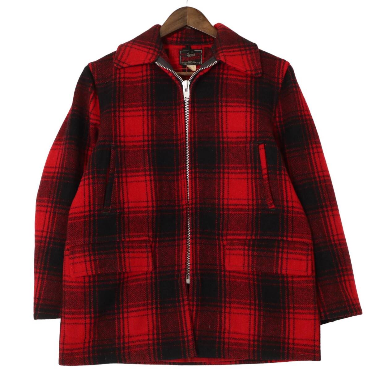 > 60年代 JOHNSON ウール マッキーノ ジャケット ヴィンテージ チェック レッド (メンズ H31) 中古 古着 A1214