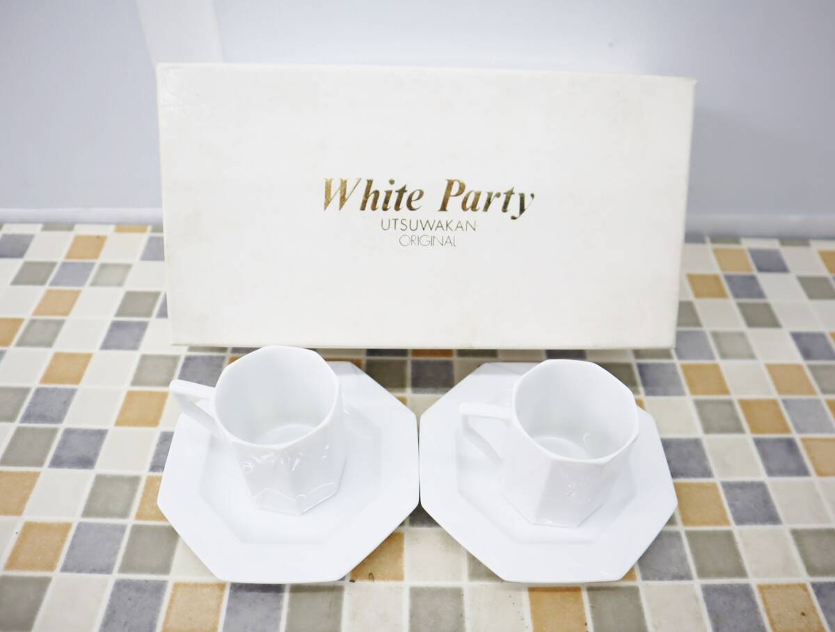 > ◇高級食器 |2組まとめ カップ&ソーサー| UTSUWAKAN 器館 オリジナル| WHITE PARTY 2客■O2701