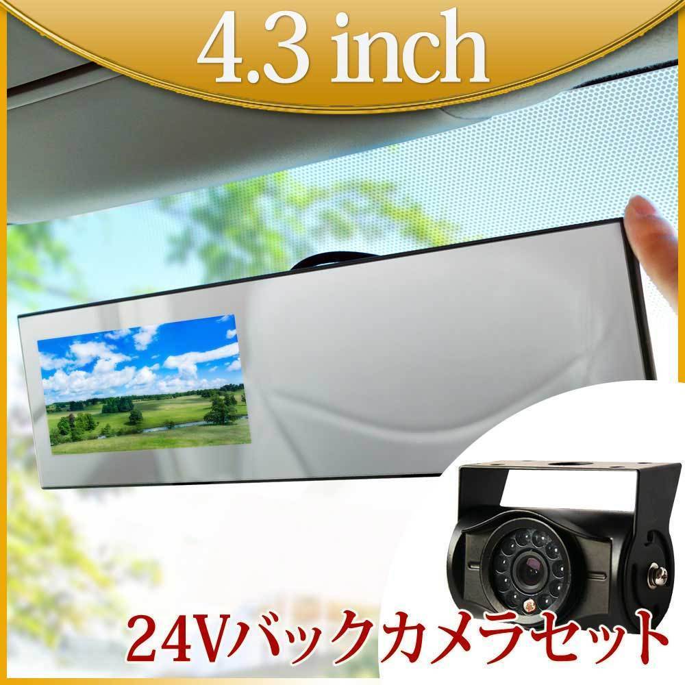 - バックミラーモニター 4.3インチ バックカメラセット 24V専用 映像2系統入力 バック連動 後付け 遮光 1年保証 B3431C8700B