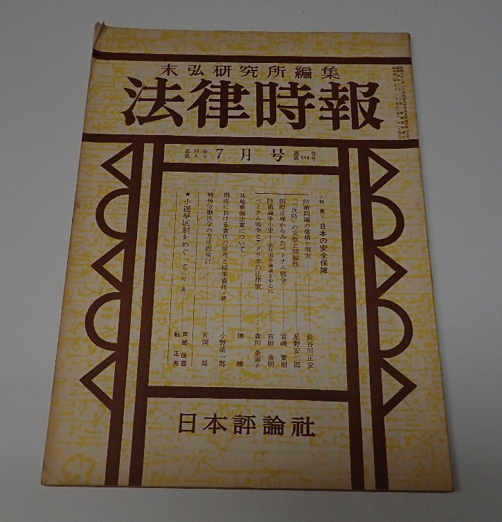 ●「法律時報 第444号 1966年7月 第38号巻8号 日本の安全保障」 末弘研究所 日本評論社