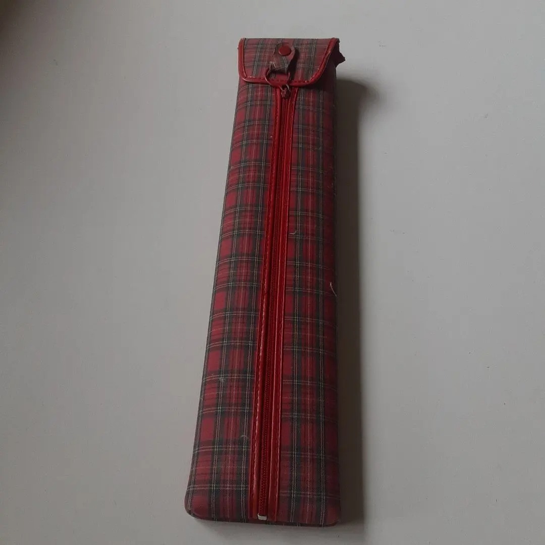 - 木製四つ玉そろばんと★チェック柄ケース♪