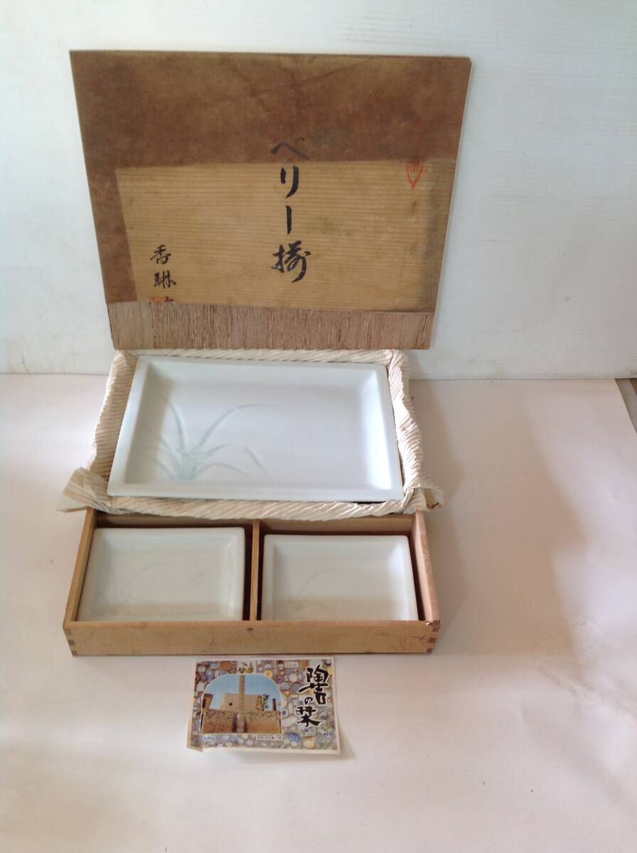 - *有田焼 焼物皿 染付 香琳作 ベリー揃 蘭紋 銘々皿 取り皿 長角皿 1枚&小皿5枚 和食器 箱付 中古品/現状品*