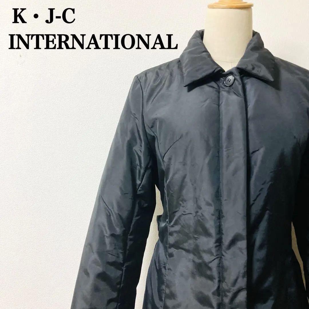 - T 美品 KJC INTERNATIONAL ケージェーシーインターナショナル ハーフコート ナイロン Aライン ブラック 黒 9AR