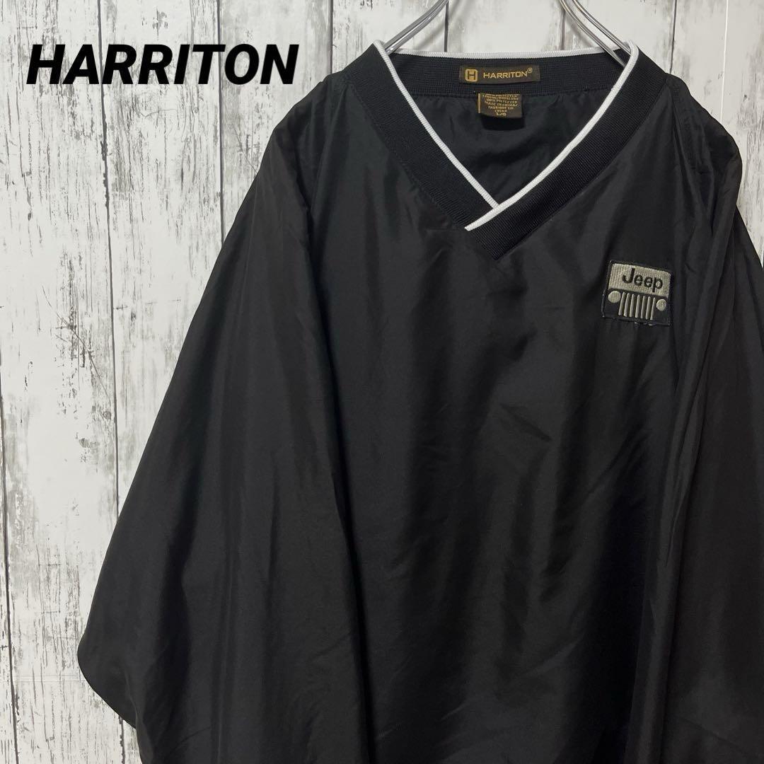 - C2580 HARRITON プルオーバー 刺繍ロゴ ブラック ブルゾン 海外古着 アメリカ古着 ジャンパー アウター スポーツ 上着 カジュアル L