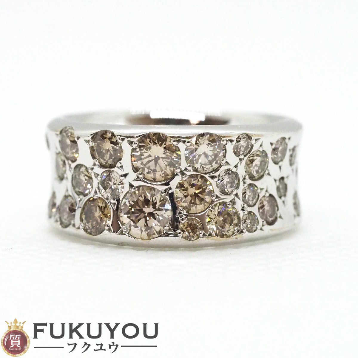 > K18WG ダイヤモンド 計1.50ct ホワイトゴールドデザインリング 10.9g 7号 指輪