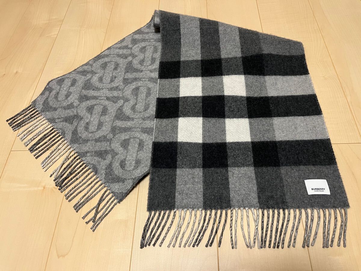> BURBERRY バーバリー マフラー カシミア100% モノグラム リバーシブル 大判マフラー 美品 送料無料!!!