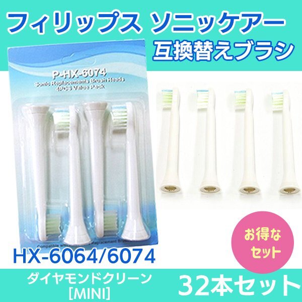 > 送料無料 PHILIPS フィリップス ソニッケアー HX6074 MINI 4本入りX8セット 32本 /ダイヤモンドクリーン ミニサイズ ソニケア 互換 電動