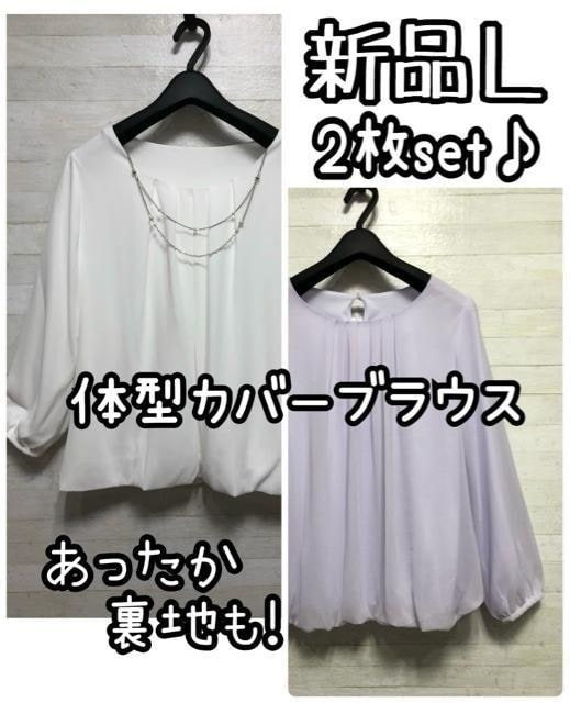- 新品☆L♪起毛裏地付きブラウスなど2枚セット♪体型カバーブラウス☆Q470