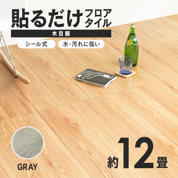 > 【グレー】木目調 フロアタイル 約12畳 144枚セット 貼るだけ シール 接着剤不要 リノベーション 床材 シート DIY リフォーム おしゃれ