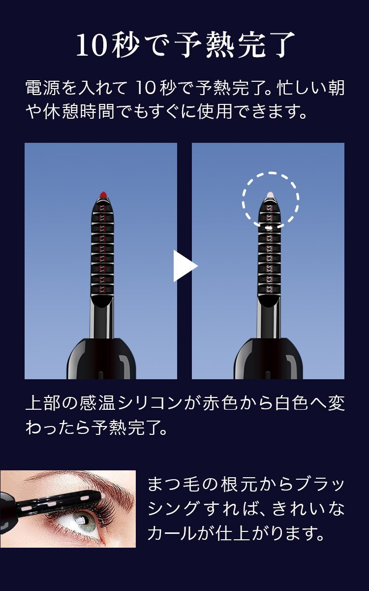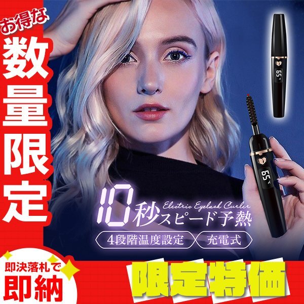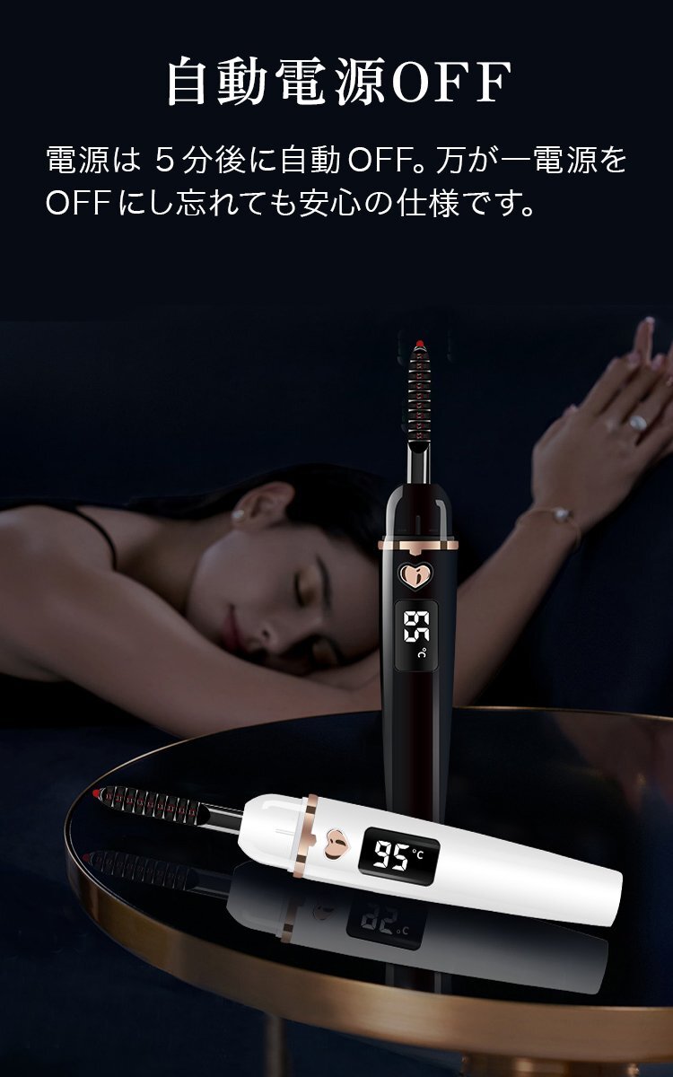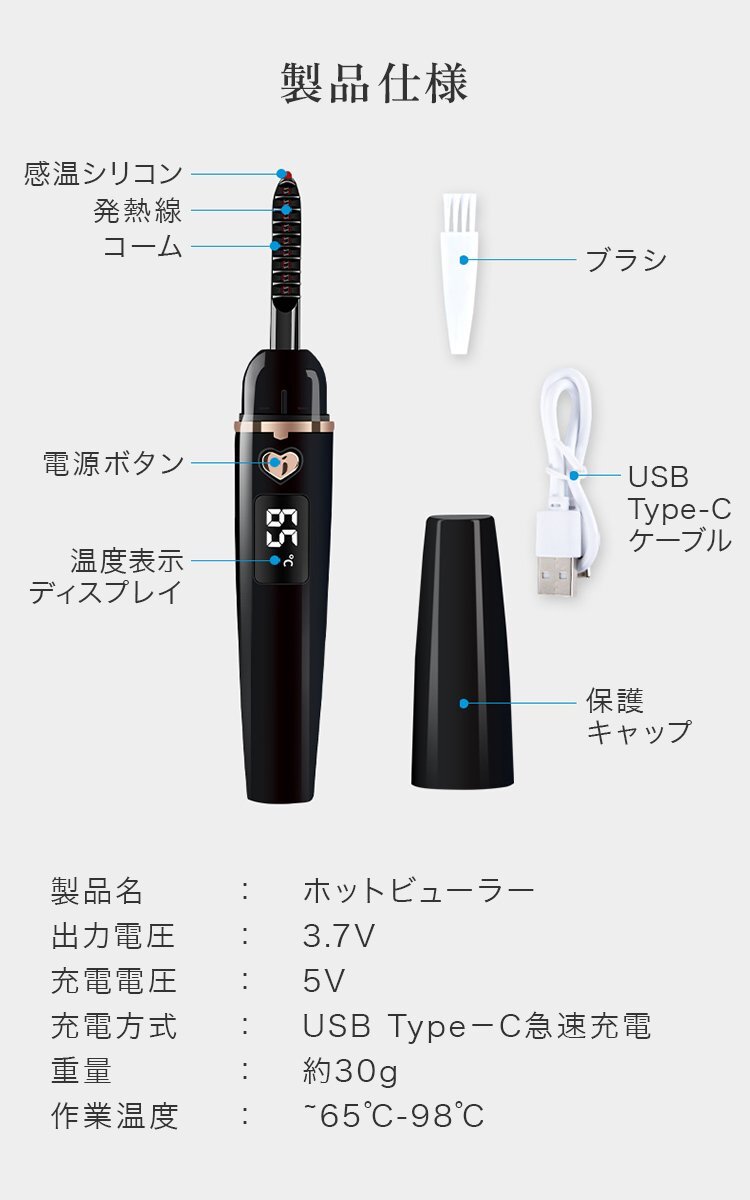 > 【限定セール】ホットビューラー ホットアイラッシュカーラー 4段階温度設定 予熱10秒 やけど防止 USB充電式 自動OFF まつ毛カーラー 黒