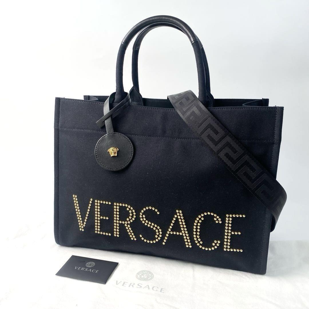 - 未使用 ヴェルサーチェ スタッズロゴ 2way トートバッグ 1A10397