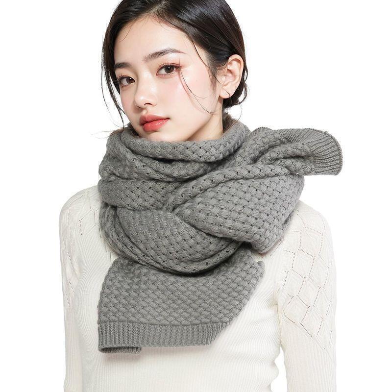 - 送料無料 マフラーレディース編み グレー ニットマフラーストール ニット 厚手 大判 シンプル 無地 冷房対策 ひざ掛け 誕生日プレゼント