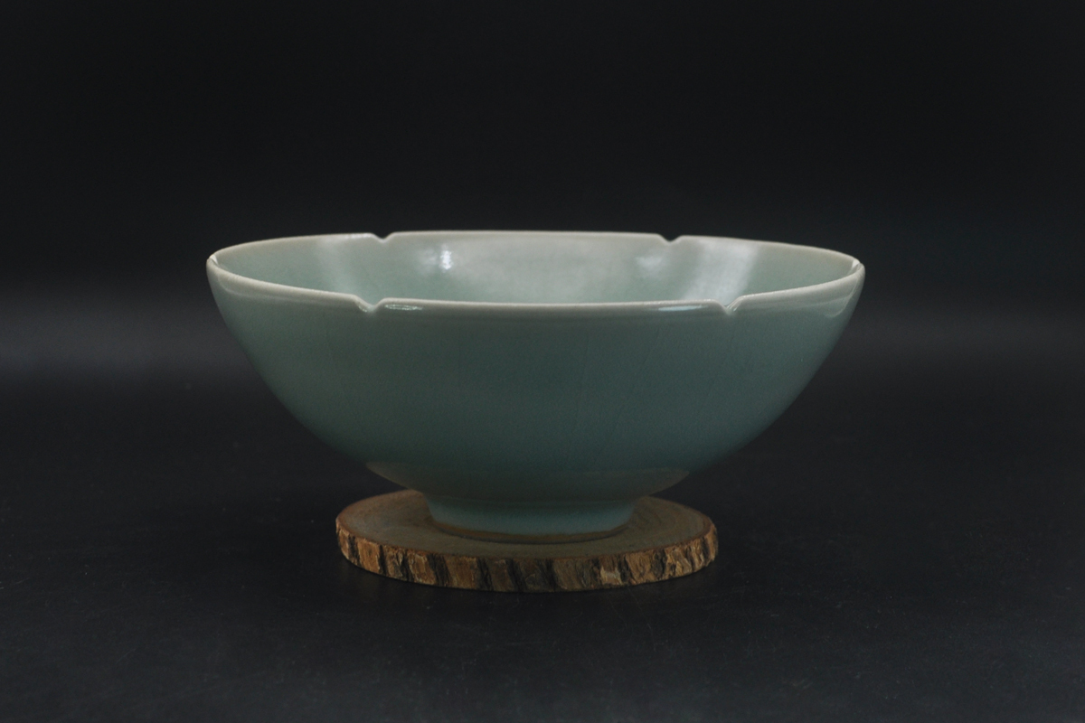 - ★唐物古玩古董★宋時代 龍泉窯 希少珍品 青磁 葵口碗