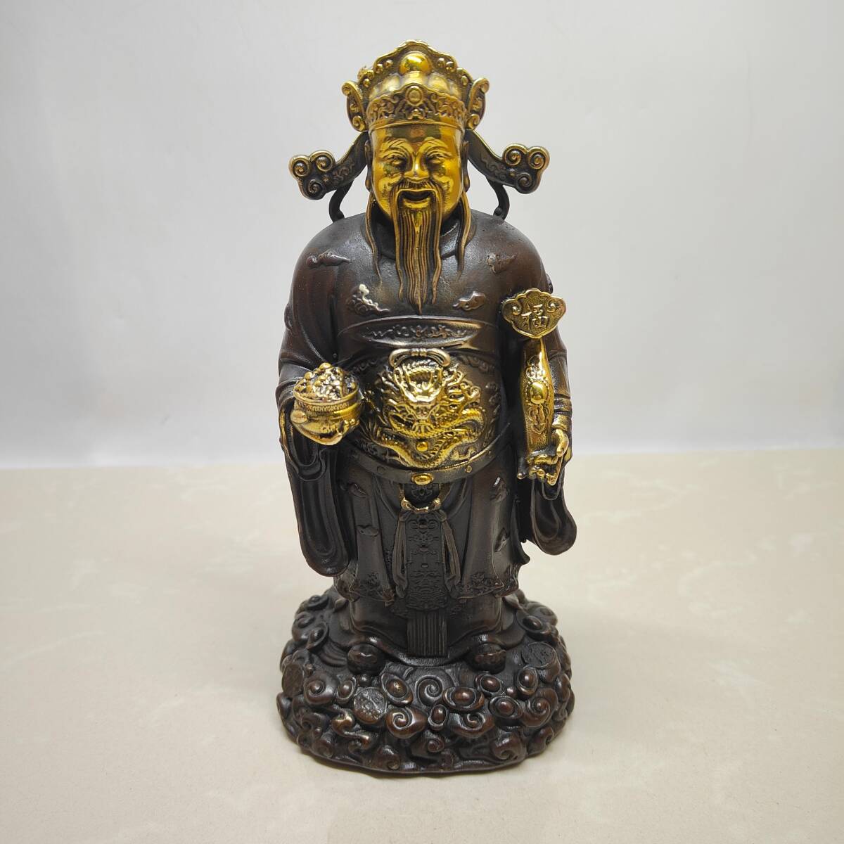 - 『館蔵珍品 紫銅製 塗金 新小文 財神像 擺件 置物 賞物』稀少珍蔵品 古賞物 貴重物品 収蔵品 中国古美術 時代物 古董品