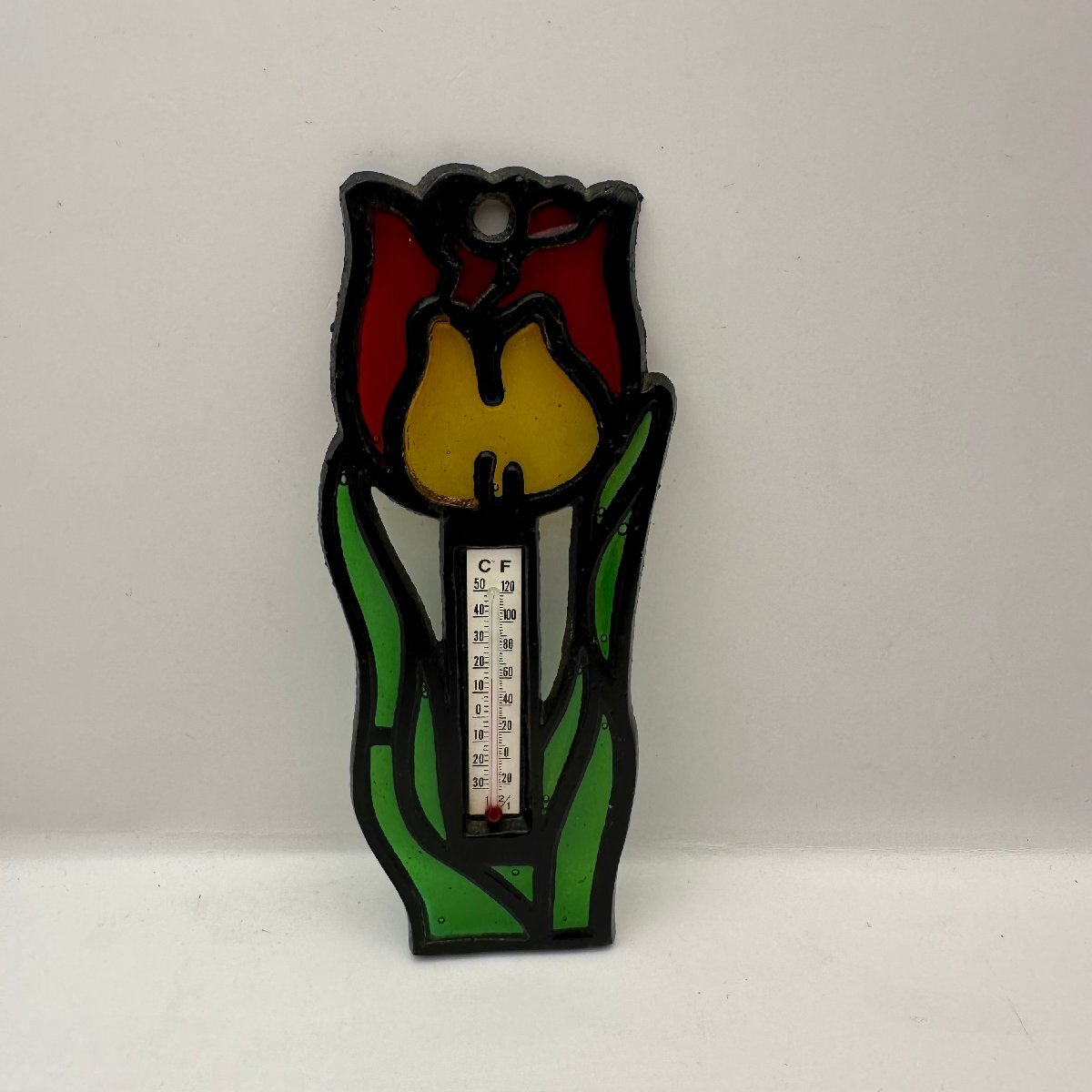 - q2724 ヴィンテージ ステンドガラス 温度計 チューリップモチーフ 壁掛け インテリア雑貨