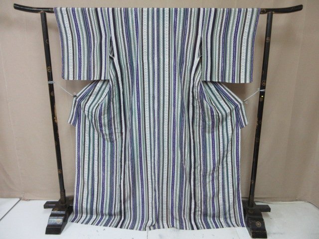 - 1円 良品 小紋 化繊 着物 洗える 和服 和服 縞 飾り縞 亀甲 菱 お洒落 高級 単衣 身丈164cm 裄68cm【夢職】★
