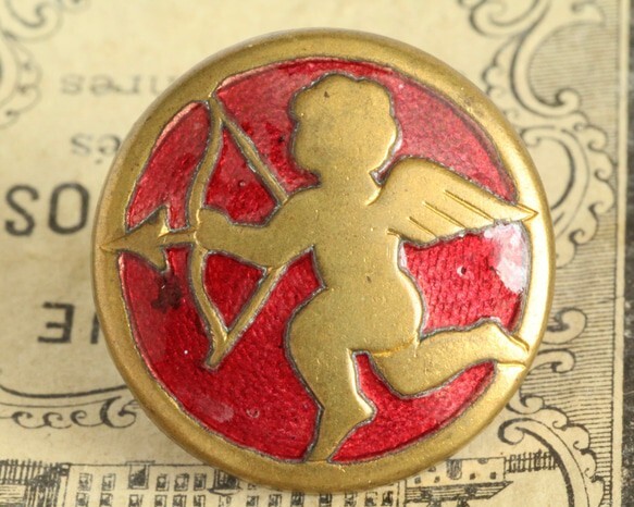 - 即決 天使 エナメルボタン φ27mm レッド エンジェル キューピッド フランス輸入 ヴィンテージ