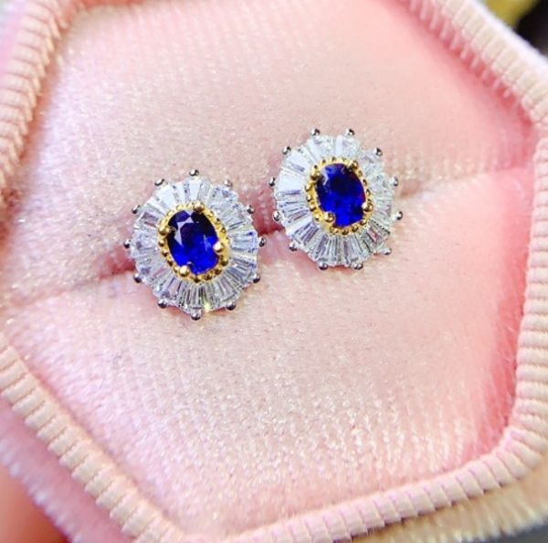 - 天然サファイアピアス 3x4mm 鑑別付き 天然石 ナチュラル カラーストーン 宝石 ◆最初の入札者様は開始価格で購入可能 S0zYu_7452