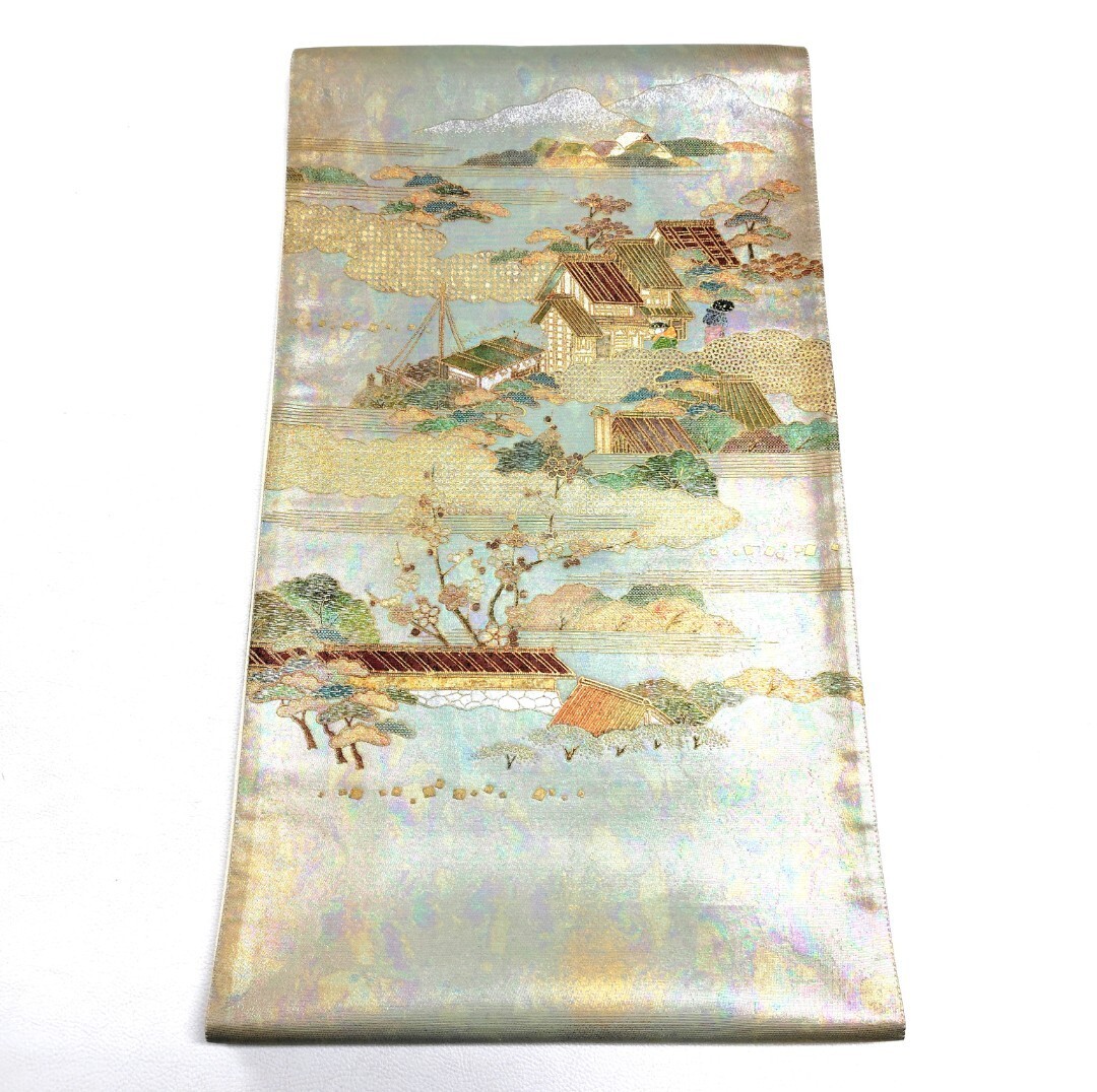 - 帯65 落款 作家物 嵐峡 高級 正絹 太鼓六通 袋帯 松 xskogmc