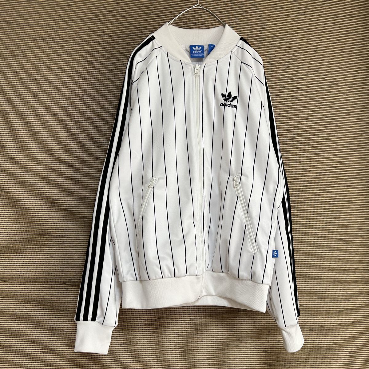 > アディダス ジャージ トラックジャケット トレフォイル白刺繍 デカロゴH2 古着 入手困難 激レア 希少 人気 レディース 縦じま