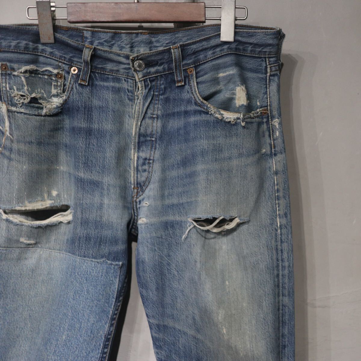 > 【即決】euro Levi's 501 ユーロ リーバイス インディゴ デニム パンツ ジーンズ ヒゲ ダメージ リペア クラッシュ ボロ BORO 古着 W33