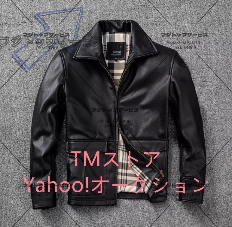 - 大人気☆レザージャケット 牛革 レザーコート 革ジャン 本革 メンズファッション カウハイド カーコート ビッグサイズ バイクレザー S~5XL