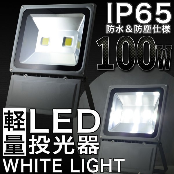 > 100W LED投光器 PSE取得済 IP65 広角 120度 AC電源コード付属 屋内灯 屋外灯 ライト 作業灯 照明 ガレージ 看板 LED 昼光色