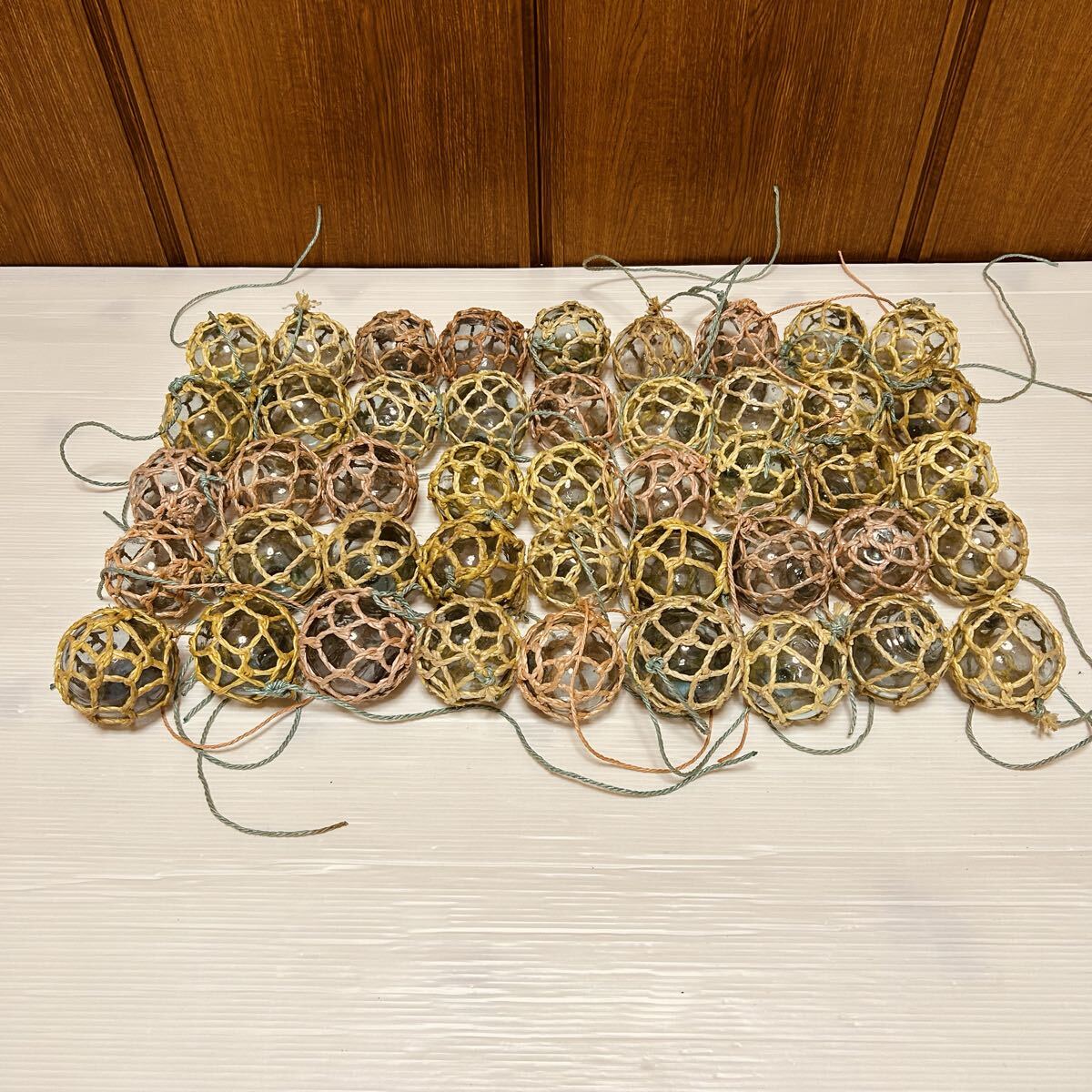 - 浮き玉 ビン玉 45個 直径約8.2~8.8cm 網付 漁具 漁業 まとめ売り 気泡 緑系
