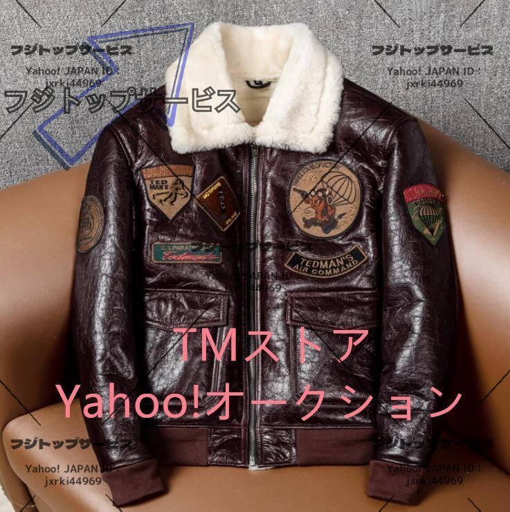 - 大人気 フライトジャケット 仔羊革 毛皮一体 革ジャン シープスキン レザージャケット 刺繍 メンズファッション コート 本革 空軍 S~5XL