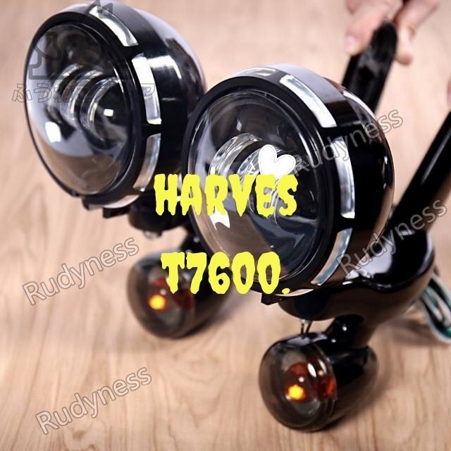 > C371 ハーレー グロスブラックバースト補助照明 ブラケット LED Harley Electra Glide Road King FLHR Street Glide FLHX 1996-2013