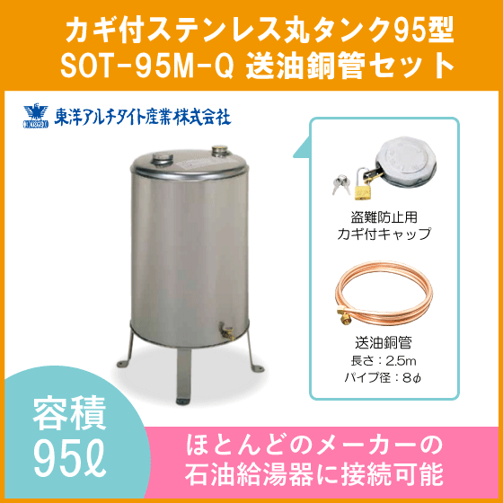 - 灯油タンク カギ付ステンレスオイルタンク(丸型) 送油銅管セット 石油給湯器 ボイラー用 95リットル SOT-95M-Q 東洋アルチタイト