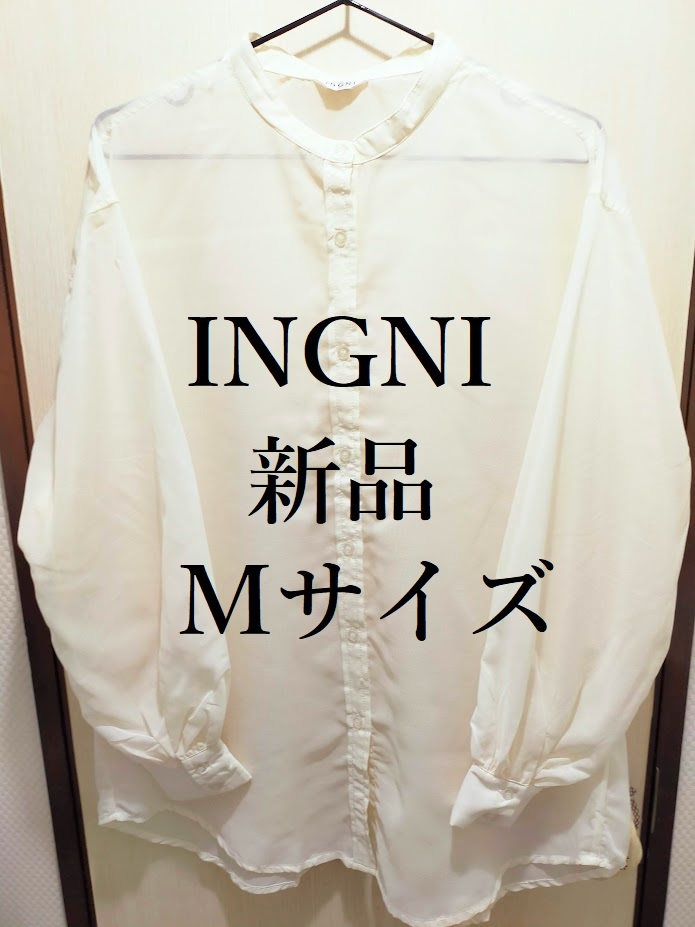 - 【新品】INGNI バンドカラーボリューム袖シアー素材ロング丈ブラウス アイボリー Mサイズ