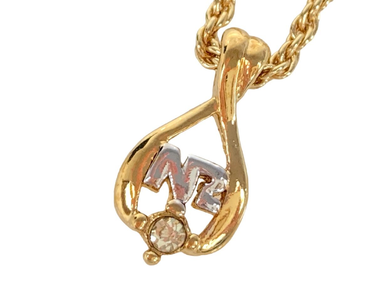 > 美品 ニナリッチ NINA RICCI NRロゴ 1Pストーン ネックレス ゴールドカラー×シルバーカラー YAS-10492