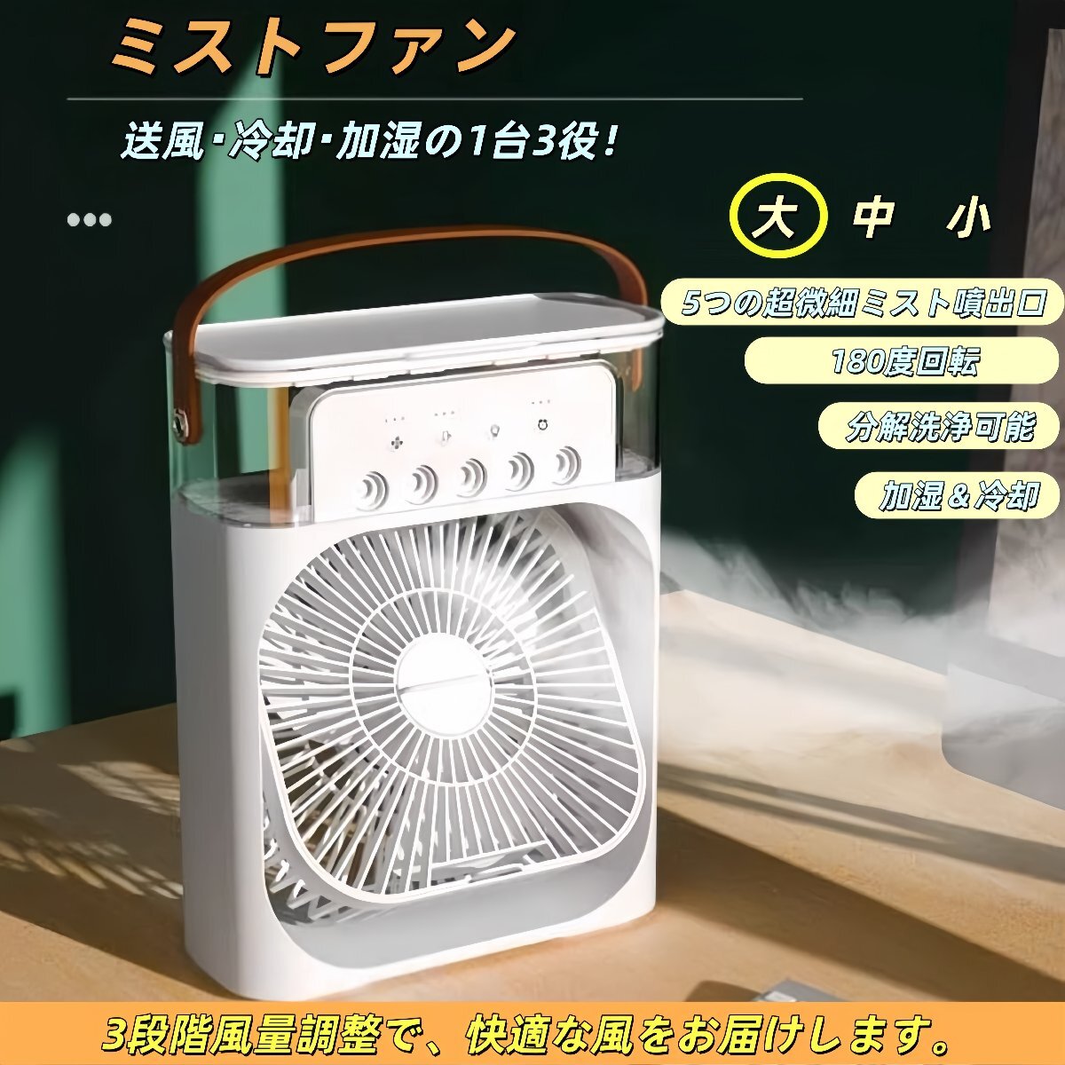 - 超音波ミスト付き卓上 冷風扇 扇風機 軽量 携帯便利 USB給電 熱中症 加湿器 持ち運び ハンディ 暑さ対策 室内・オフィス対応 サンキュー