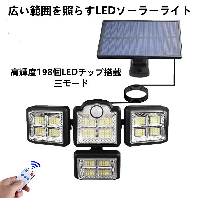 - センサーライト 4面灯式 LED ソーラーライト IP65防水 防犯ライト リモコン付き 屋外照明 壁掛け可能 投光 駐車場 歩道 芝生 庭 停電