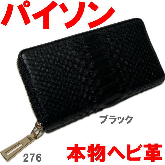 - ブラック パイソン 本物 ヘビ革 ラウンド 長財布 276 メンズ レディース