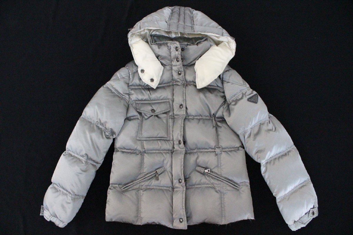> プラダスポーツ PRADA SPORT トライアングル プレート ダウンジャケット ジャンパー ブルゾン シルバー グレー [Tg10 130/68] キッズ G1008