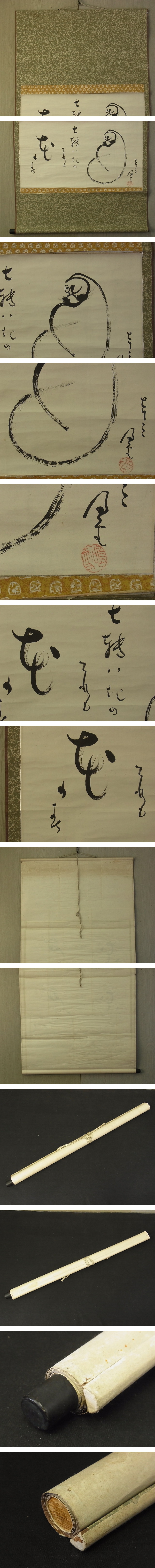 - 【模写】 t1902 蔵出 掛軸 達磨図 紙本 作者不詳 日本画 軸先無し 書画 骨董 古美術