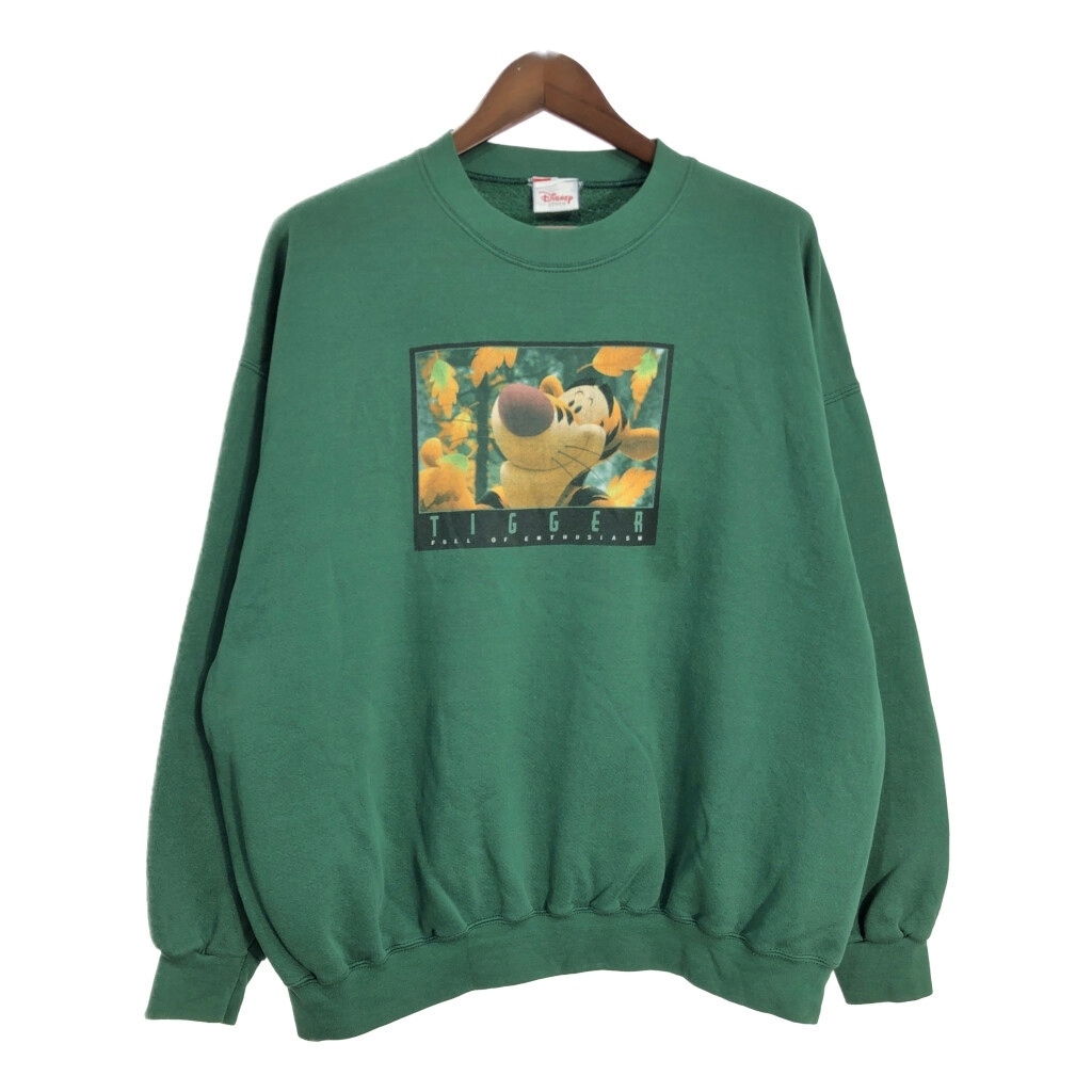 > 90年代 Disney ディズニー くまのプーさん ティガー スウェット 大きいサイズ キャラクター グリーン (メンズ 2XL相当) 中古 古着 T2204