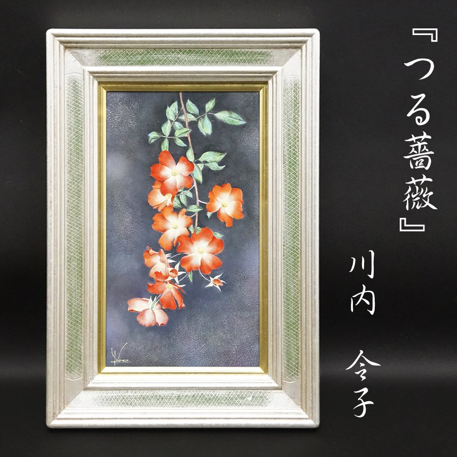> 川内令子『つる薔薇』4号 油彩 油絵 原画 直筆 静物画 絵画 額装 美術 芸術 アート 裏書サイン有 古美術品 真作保証品