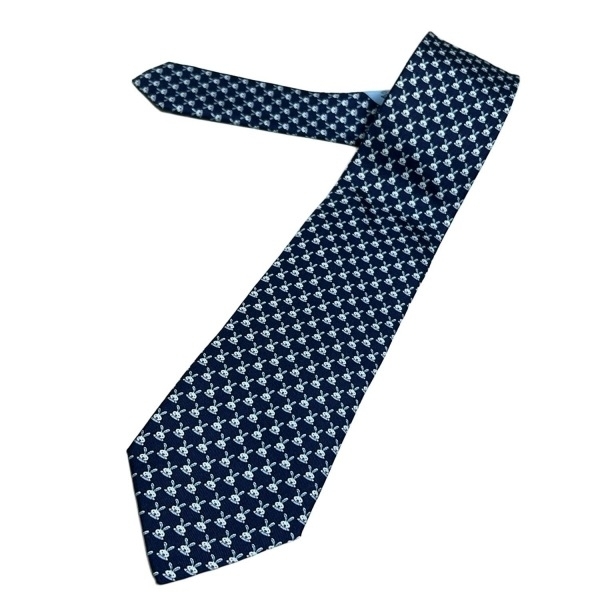 > サルバトーレフェラガモ FERRAGAMO/SalvatoreFerragamo - ネイビー×ライトグレー×マルチ メンズ ウサギ柄 新品同様 ネクタイ