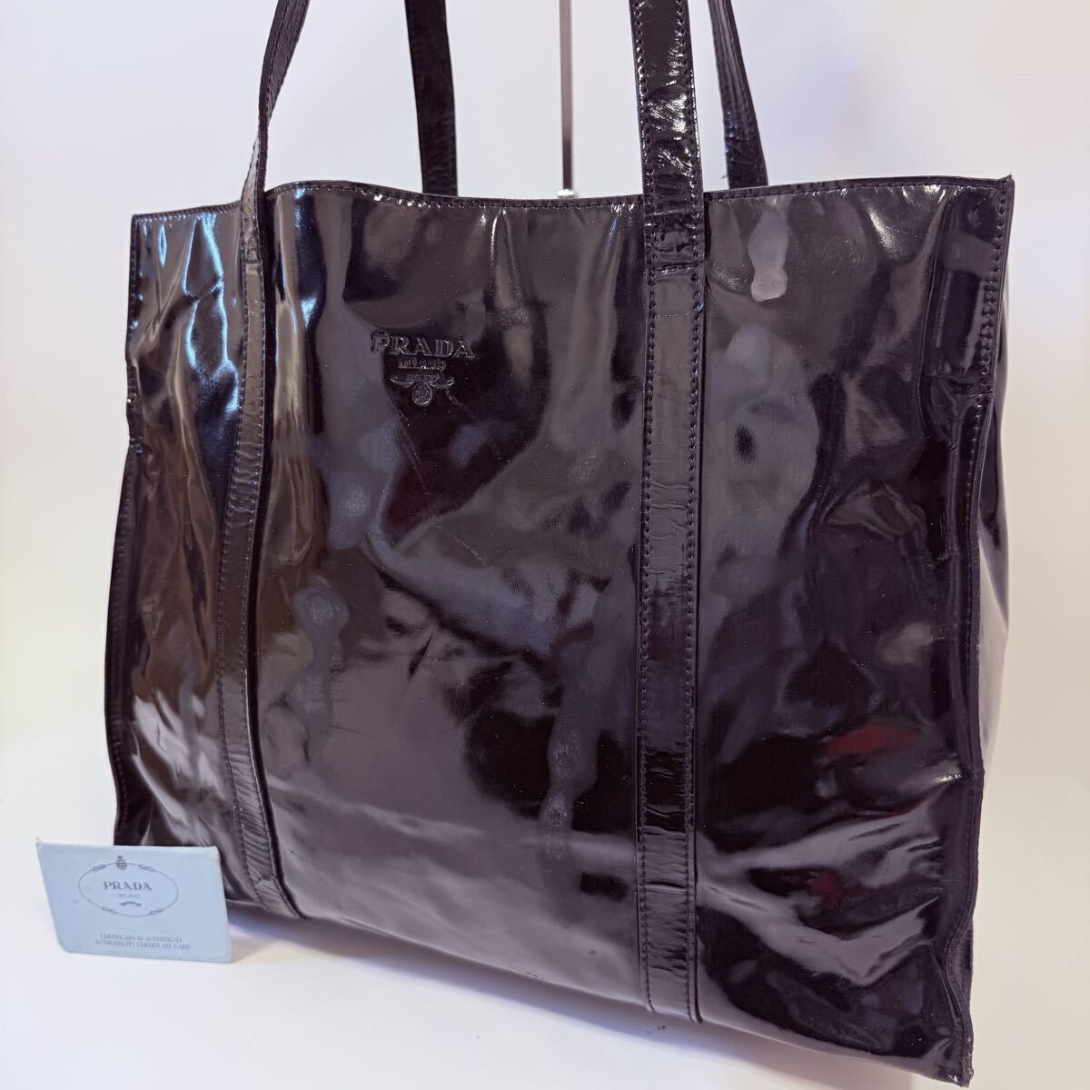 > プラダ PRADA パテントレザー エナメル トートバッグ トートバック ブラック 黒 ブランドロゴ型押し A4可 大容量