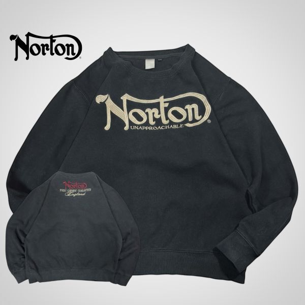 - ★BIGロゴ刺繍両面★Norton スウェット sizeM★EVERY GARMENT GUARANTEED ノートン 古着 クリーニング プレス済み H0024