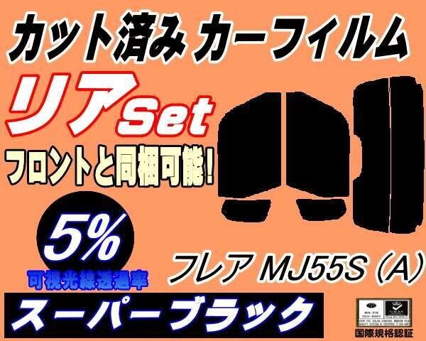 > カーフィルム スーパーブラック カット済み リアセット フレア MJ55S Atype (s) スモーク MJ55 ハイブリットにも適合 マツダ