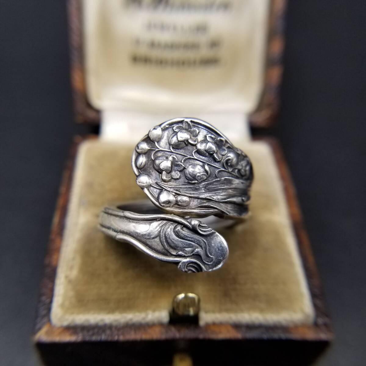 - 70'80's Gorham社製 スズラン 花 フローラルパターン ヴィンテージ スプーン リング 925 シルバー 銀 指輪 幅広 レトロ クラシック Y24-X